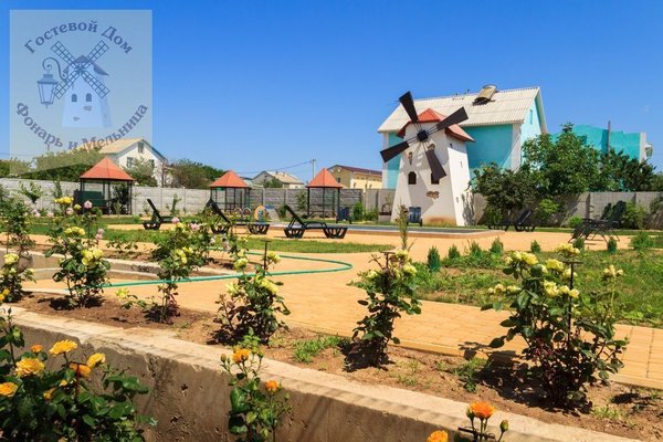 В вечернее время территория гостевого дома подсвечивается фонарями, которые создают сказочное обрамление извилистым дорожкам.