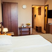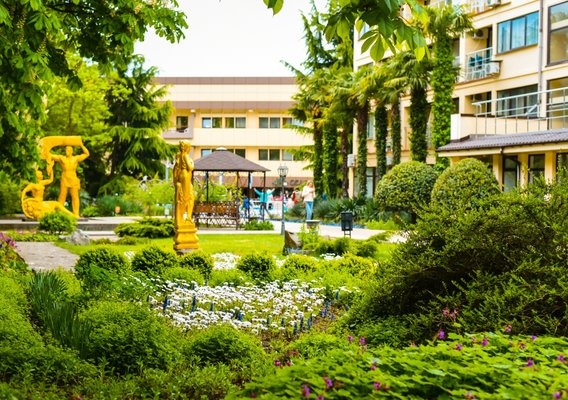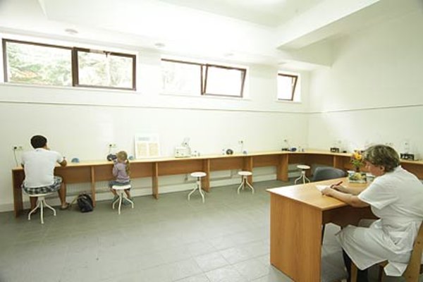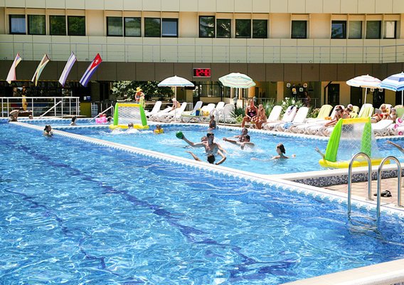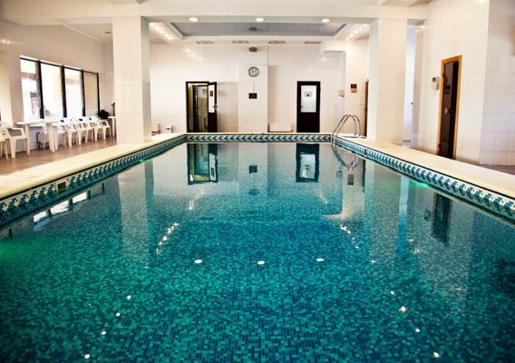 На территории санатория есть крытый бассейн, размером 6Х12. Так же, есть открытый подогреваемый бассейн. Пользование бассейном входит в стоимость проживания.