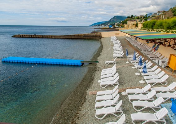 Междугородним автобусом до автостанции г.Алушта, далее городским автобусом №2,4,7,8, 8Д, 9, 26 до остановки "т/б «Чайка»".