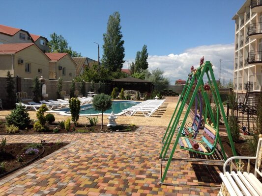 Рядом с отелем база отдыха «Прибой», в 5 минутах езды — соленое озеро Сакское и аквапарк «Банановая Республика». До аэропорта и железнодорожного вокзала Симферополя — 60 километров.
