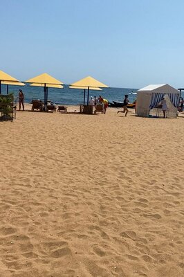 На пляже есть точки общественного питания: кафе и бары. Есть кабинки для переодевания и медпункт.