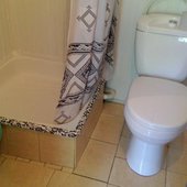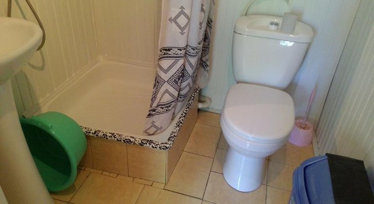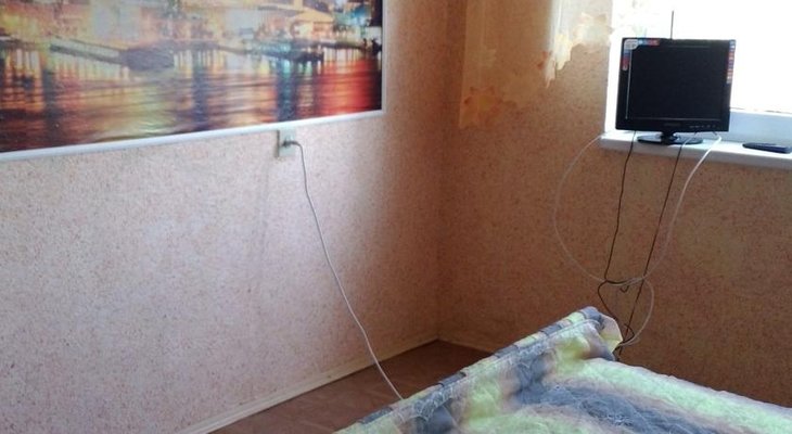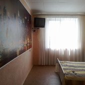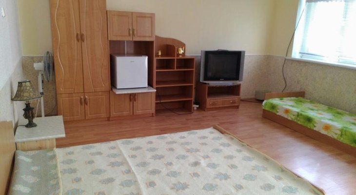 Номера обустроены телевизором, необходимой мебелью и собственным санузлом, котором есть душ, туалет, раковина и набор полотенец, общая кухня.