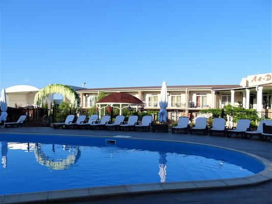 Отель Ле-Ди состоит из трех корпусов, которые расположены на западном побережье Крыма, в 6 км от центра города Саки. Корпуса расположены на 1 и 2 береговой линии, в 50 м от моря.