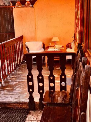 У нас был номер на втором этаже, просторный, с балкончиком. Все есть: кондиционер, телевизор, интернет, холодильник, плита, чайник и многое другое. Душ и туалет внутри. Парковка на закрытой территории, за авто можно не переживать. Рядом есть магазинчик, аптека - все необходимое под рукой. Отдыхом вполне довольны, спасибо.