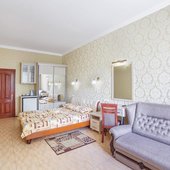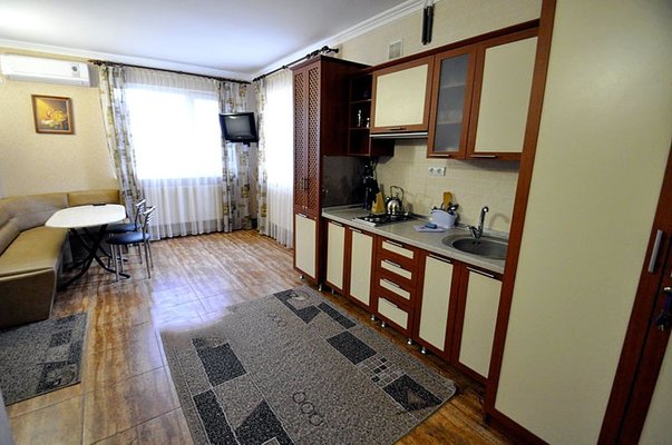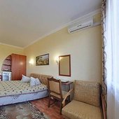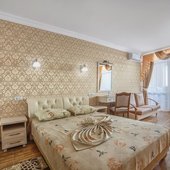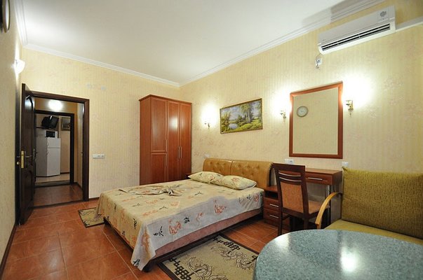 Отель является частной собственностью, здесь созданы особые комфортабельные условия для размещения, номера оснащены мебелью и сантехникой, современной бытовой техникой, системой охлаждения и кондиционирования. В номерах гостевого дома есть просторные лоджии, с которых открывается прекрасный вид на горы и морское побережье Крыма.