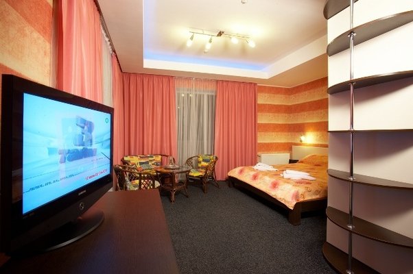 В гостевом доме представлено шесть категорий номеров, которые оборудованы необходимой техникой и мебелью. Комнаты расположены на первом и втором этаже. Вместительность гостиницы до 70 человек.