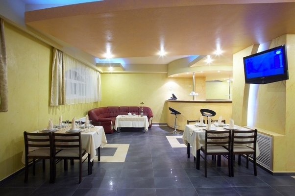 В стоимость номера включен завтрак на 2 человека. Ресторан в отеле работает с восьми утра до десяти вечера, где подаются блюда европейской кухни. Помимо собственного ресторана в нескольких метрах находится столовая.