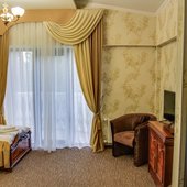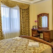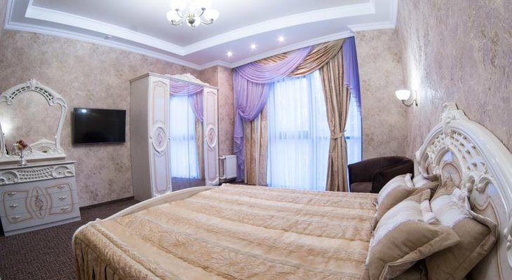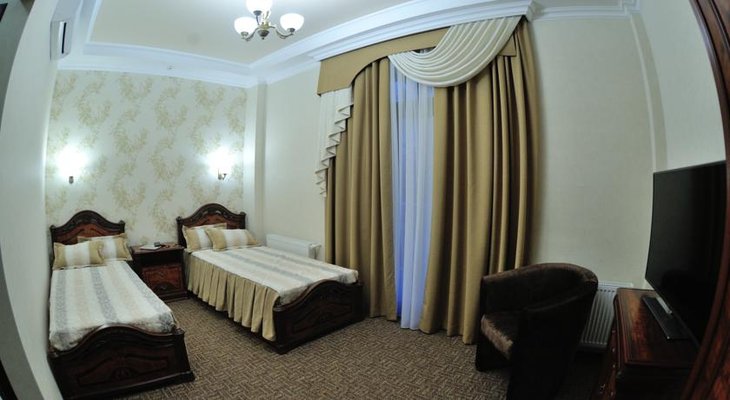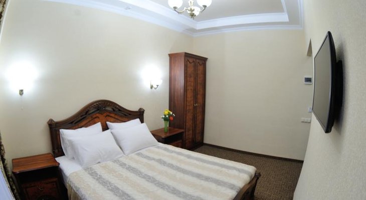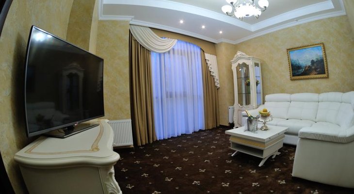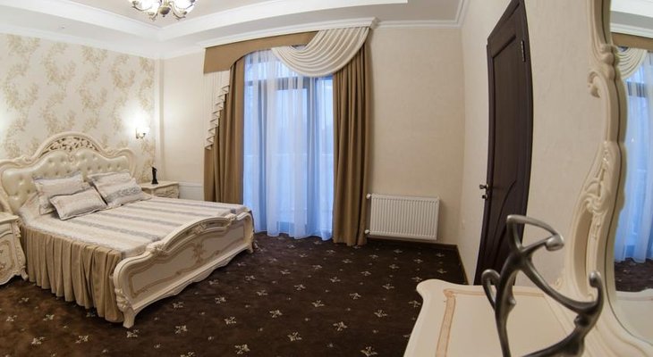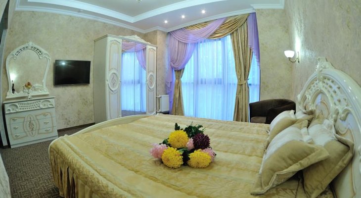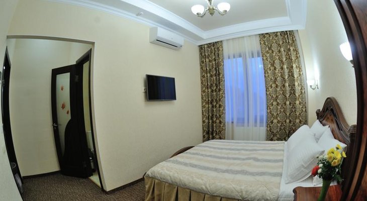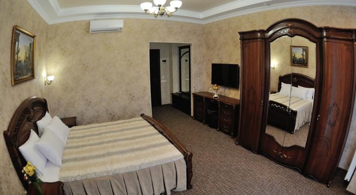 Для постояльцев предлагаются комфортабельные номера, имеющие всю необходимую мебель и технику. В каждом есть ванная комната. По всей территории установлена зона покрытия бесплатного Wi-Fi. Всего насчитывается пять категорий номерного фонда.