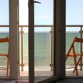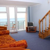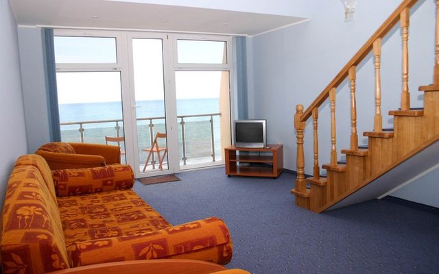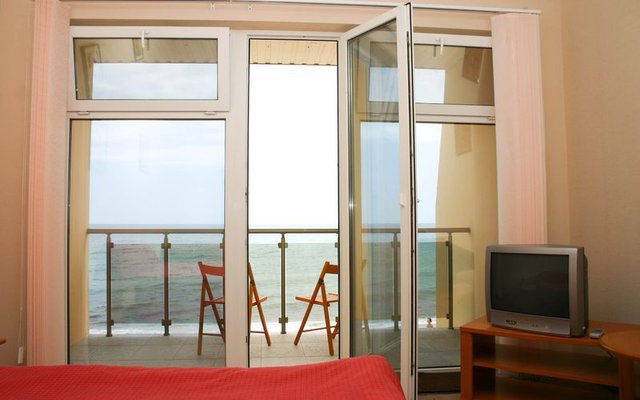 Самолётом до аэропорта г. Симферополь, рейсовым автобусом до автовокзала г. Феодосия, далее маршрутным такси №4а до п. Береговое, до остановки «По требованию», далее пешком 98 м.