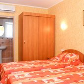 Весь номерной фонд выполнен в классическом стиле и в светлых тонах. В гостинице можно выбрать не только обычные категории, но и снять целый коттедж. В каждом номере есть все необходимое, чтобы проживание на территории «Хижины Робинзона» прошло на высшем разряде, а удобная мебель и современная техника, только поспособствуют этому.