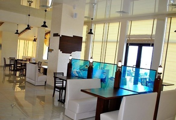 На седьмом этаже гостевого дома, находится кафе, где подаются блюда европейской кухни. С открытой террассы открывается шикарный вид на побережье. В пешей доступности есть рыбный ресторан, фруктовый рынок и кафе.
