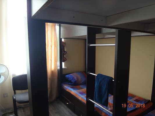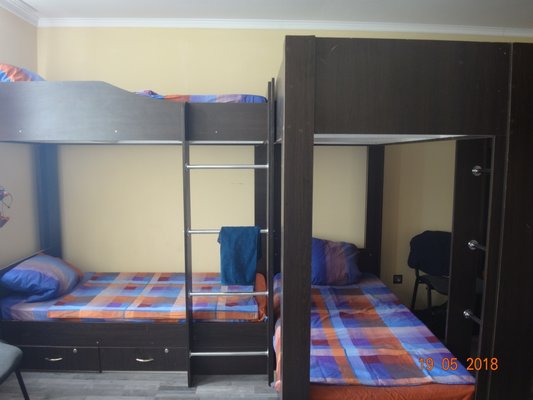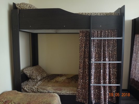 Вы можете заселиться в общий женский или мужской номер или в отдельный с двумя раздельными кроватями. Ванная комната находится на этаже.