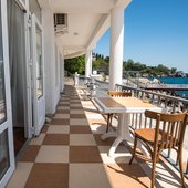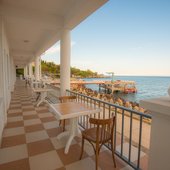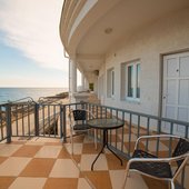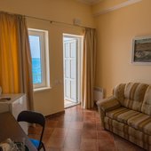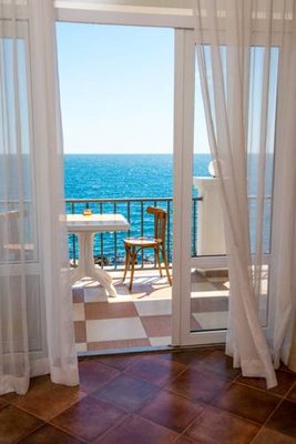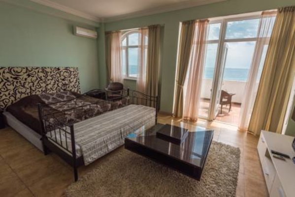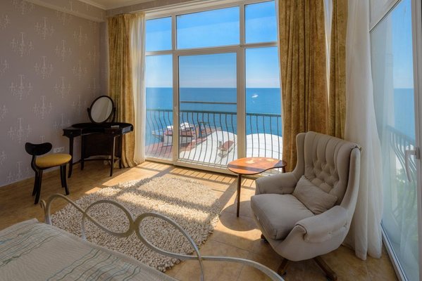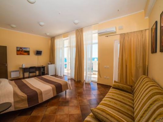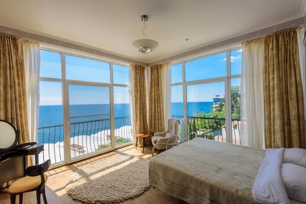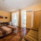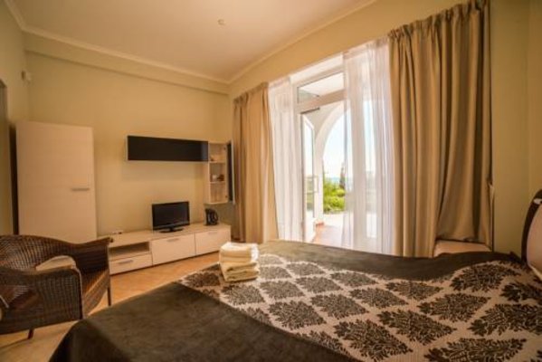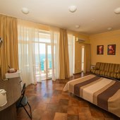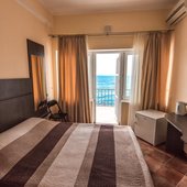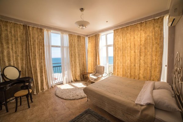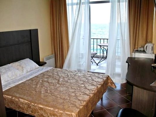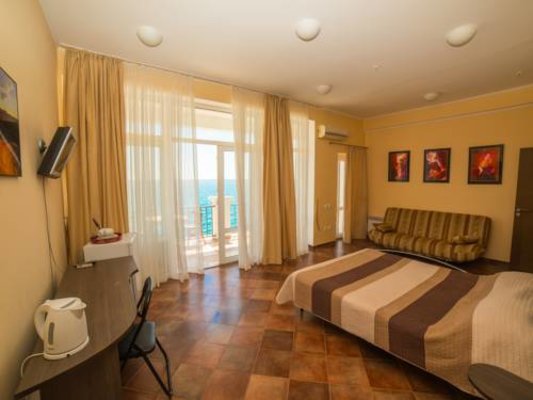 Номерной фонд располагает разными категориями, в которых удобно разместиться вдвоем, семьей или компанией до четырех человек. Интерьер комнат выполнен в единой стилистике и оформлен в приятной цветовой гамме. Помещения просторные и уютные, здесь приятно проводить время и отдыхать, а система кондиционирования и наличие современной техники создают дополнительный комфорт. С каждого номера есть выход на террасу или балкон, откуда открывается восхитительный вид на море.