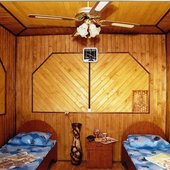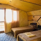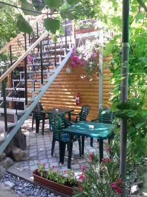 На территории располагаются отдельные домики-коттеджи (2-х, 3-х, 4-х местные) и 2 сруба по 6 номеров в каждом. На территории две общие кухни, стоянка для автомобилей, площадка для отдыха с летней мебелью.