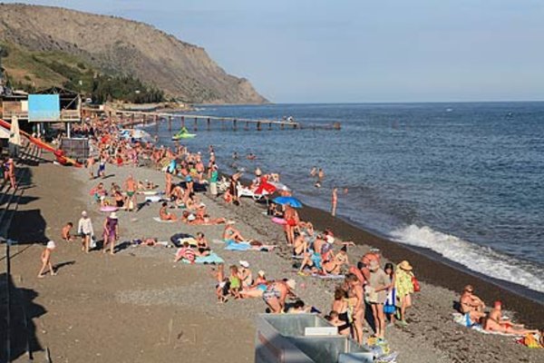 До поселкового пляжа около 1000 м., пляж мелкогалечный, необорудованный.