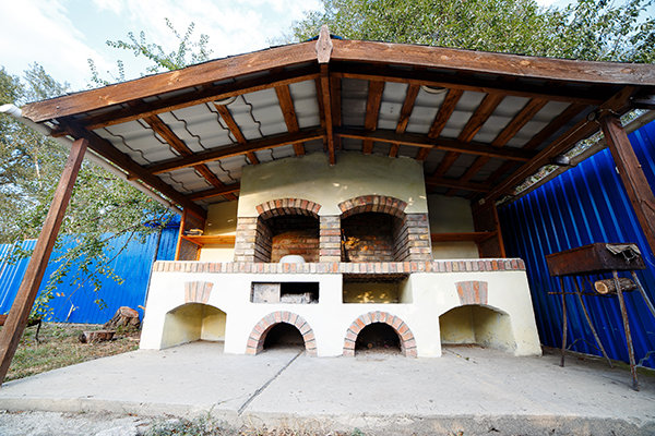 «Гостиный дворик» предлагает своим гостям комплексное питание в кафе. Кроме того, на территории гостевого дома оборудована летняя кухня, укомплектованная необходимой посудой, где можно готовить еду самостоятельно. Обустроена и зона барбекю.