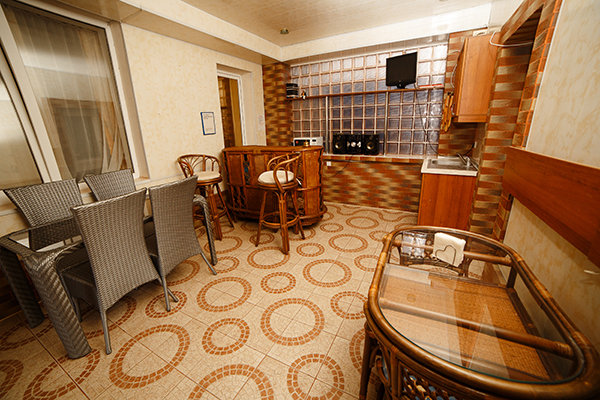 На зеленой территории гостевого дома работает открытый бассейн, есть банный комплекс с русской парной и сауной, установлены беседки, есть автопарковка. Отдыхающие могут посидеть в каминном зале, развлечься в караоке-баре, поиграть в настольный теннис или порыбачить. За дополнительную плату могут быть организованы экскурсии, поездки в дельфинарий, аквапарк или джип-сафари.