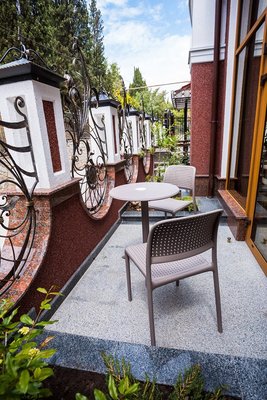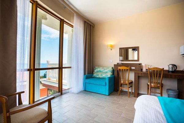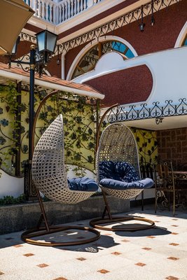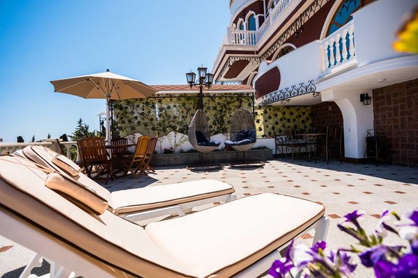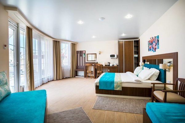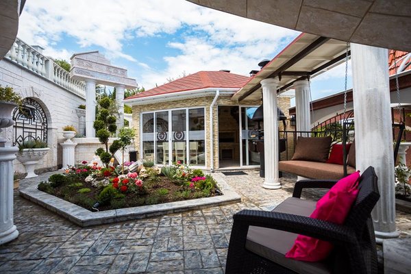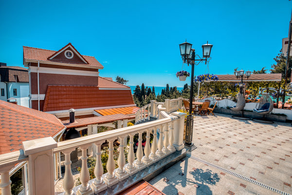 В поместье 18 комфортабельных номеров, уютная зона отдыха с панорамным видом, где гости могут не только покушать, но и приятно провести досуг (настольные игры, приятные беседы). Поместье располагает закрытой территорией с джакузи, садовым домиком с барбекю, беседкой и кровать — качелью на участке.Интерьер номеров выдержан в стиле лучших сетевых отелей. В стоимость номера входит проживание, завтрак, пользование джакузи, зоной отдыха, из которой гости могут любоваться видом на море. На всей территории работает беспроводной доступ в сеть интернет.