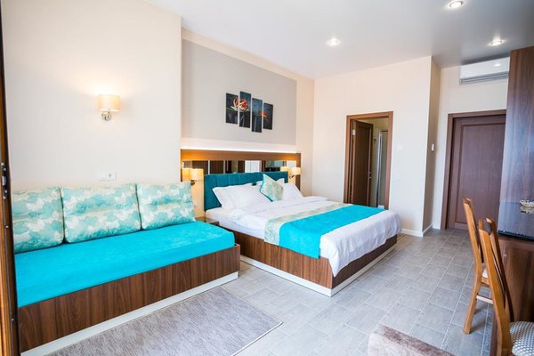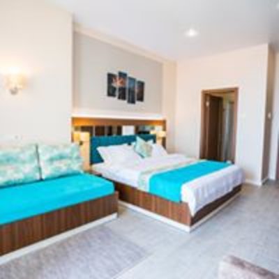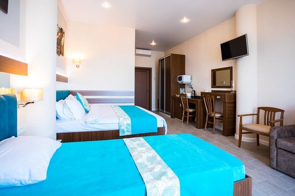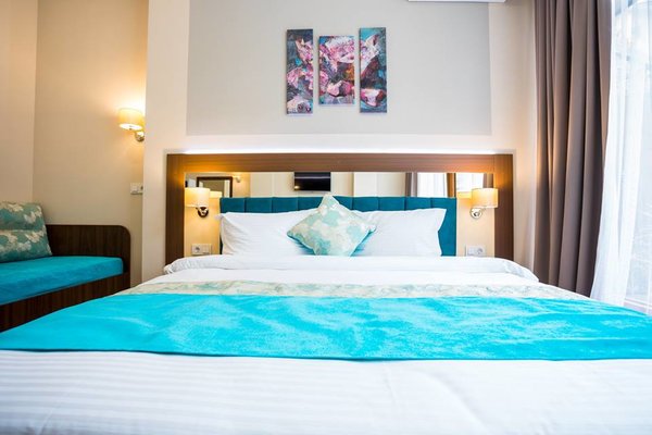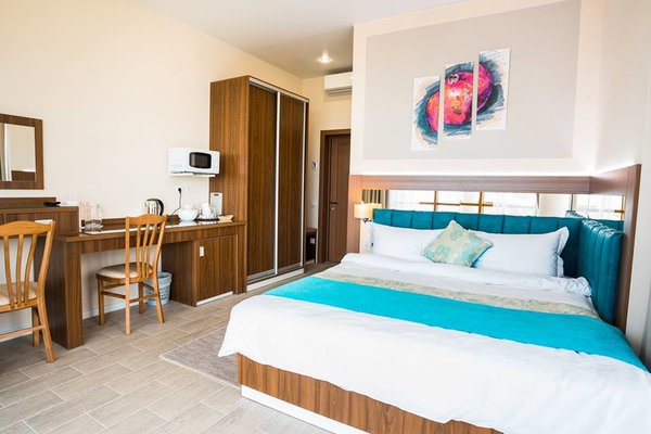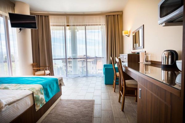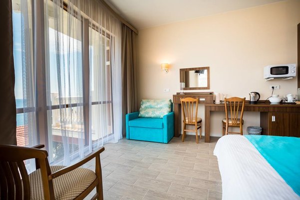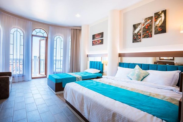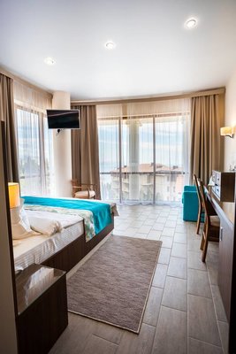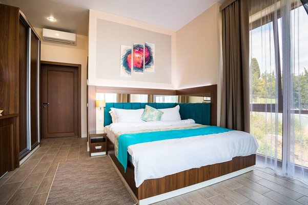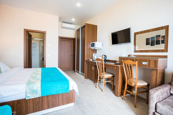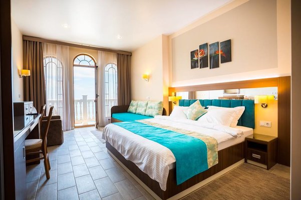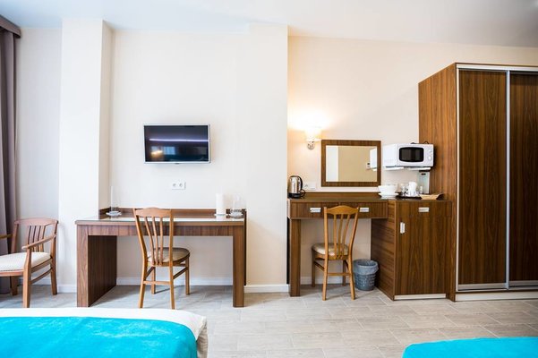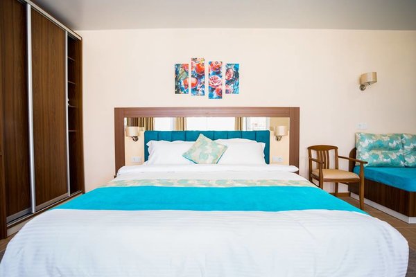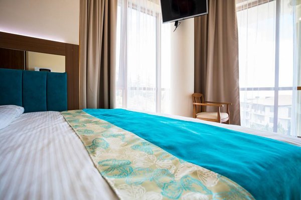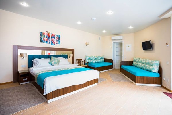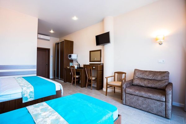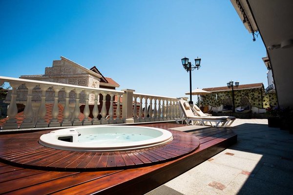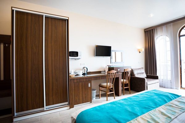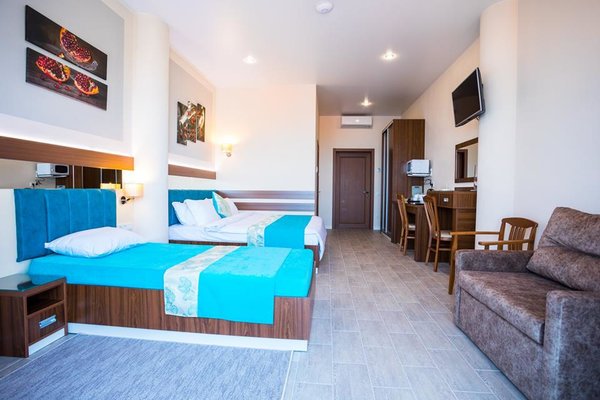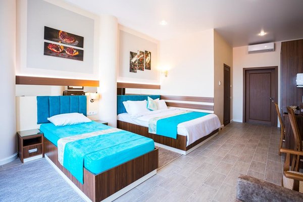 В одном цельном архитектурном комплексе расположены два объекта размещения, одним из которых является отель «Гранатовое Поместье», занимающий правое крыло здания. Рядом с отелем находится Аквапарк, Миндальная Роща и Центральная набережная города.
