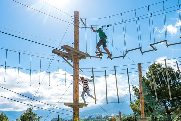 веревочный городок — самый большой в Крыму видовой веревочный парк для взрослых и детей с различными трассами и 40-ка испытаниями