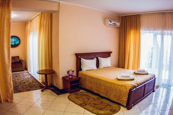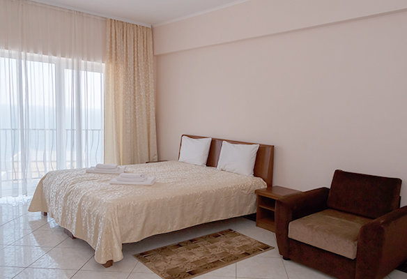 Мелко-галечный пляж находится в 100 метрах. Гости пансионата могут пользоваться зоной с теневыми навесами и шезлонгами.