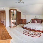 Находится совсем близко: между селами Константиновка и Клиновка Симферопольского района. К вашим услугам большая лесопарковая территория, удобные деревянные беседки c мангалом у воды и в парковой зоне, бревенчатые коттеджи, бани на дровах, детская и спортивная площадки. Комплекс из трех комфортабельных фермерских домов – это крохотная «баварская деревня» на территории Грушевого озера с собственной инфраструктурой.