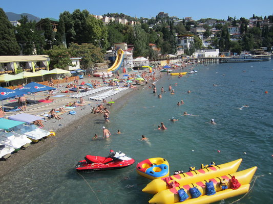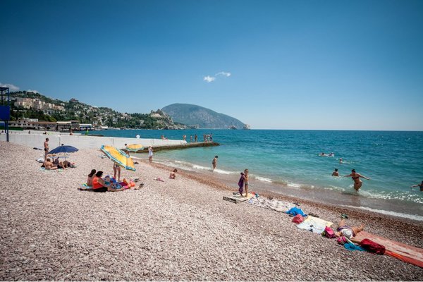 Санаторий Гурзуфский имеет галечный пляж закрытого типа, протяженностью 240 м.