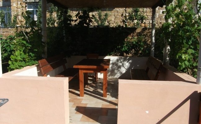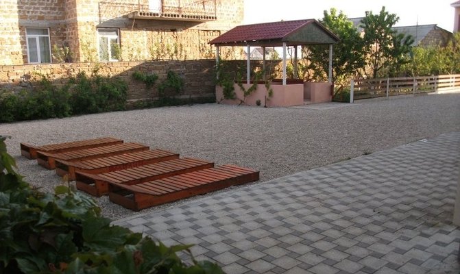 Во дворе гостевого дома беседки, столики, мангал, площадка для детей, парковка для авто. Тихий семейный отдых. Возможность обучения большому теннису профессионалом, а также доставка на личном авто к берегу моря.
