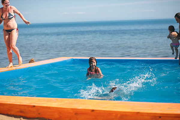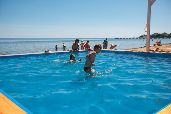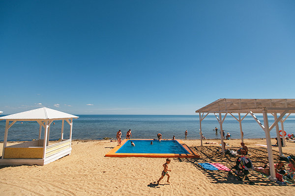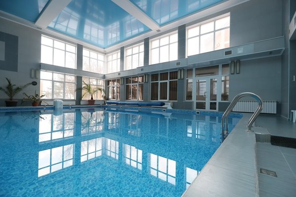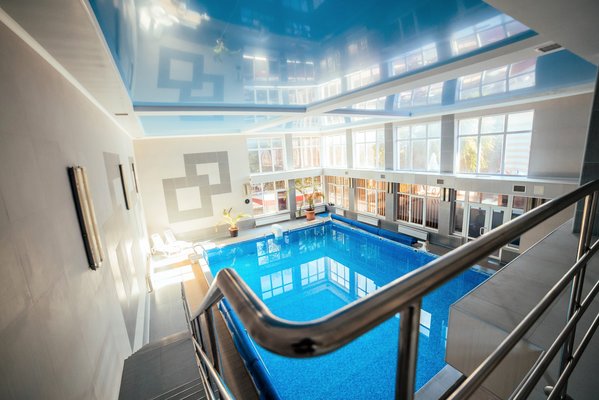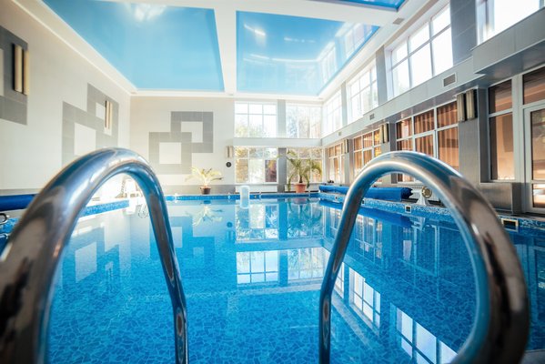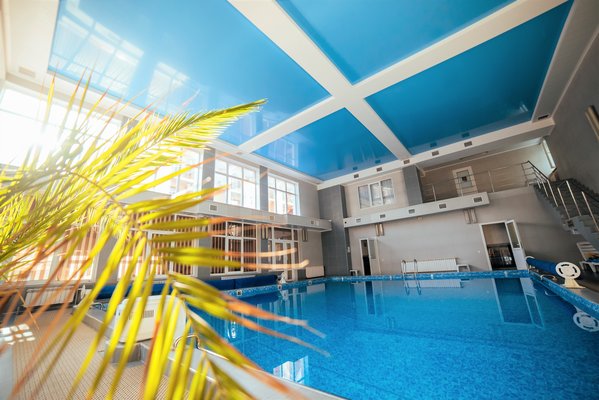 На территории санатория есть крытый бассейн, размером 10*9,5 м. и открытый не подогреваемый. Пользование бассейном входит в стоимость проживания. Так же, есть детский бассейн — на пляже с морской водой.