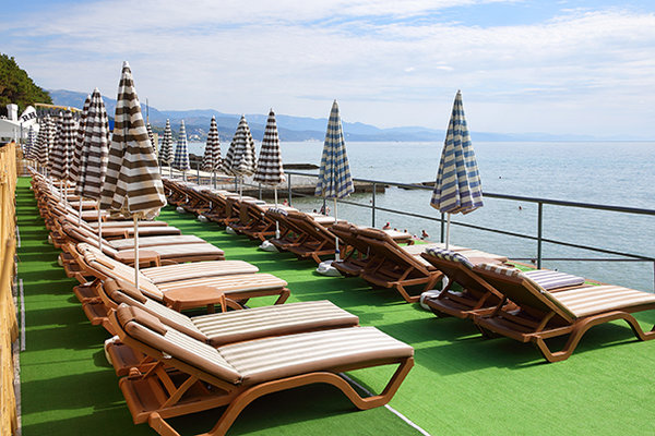 Уютная территория с тремя подогреваемыми бассейнами, два из которых с морской водой, оснащённые системой гидромассажей, аквабар, террасы и площадки для летнего отдыха, – здесь всё создано для максимально приятного отдыха гостей.