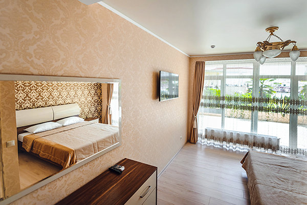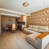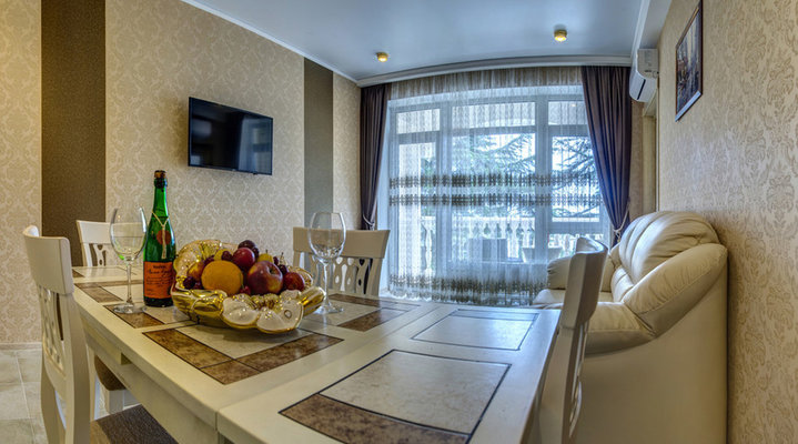 Домашние животные до 5 кг в номерах категории "Аппартаменты" с соответствующими медицинскими справками (ветеринарное свидетельство установленного образца, справка о вакцинации).
