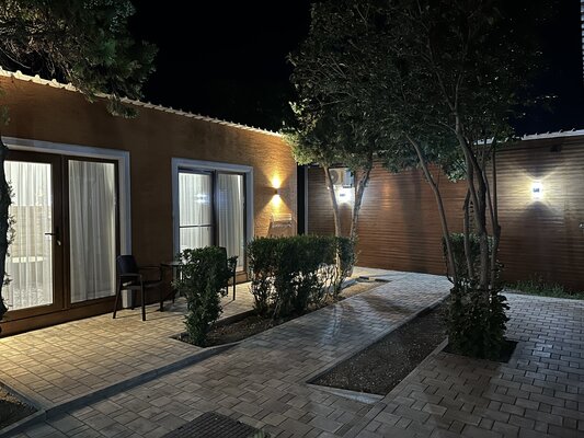 Приглашаем вас в «Ивушку» — уютную базу отдыха, расположенную всего в 150 метрах от ласкового Чёрного моря, прямо в живописном сердце курортного посёлка Николаевка. Здесь, среди ароматного тенистого двора, наполненного запахом крымских трав, вас ждёт безмятежный отдых. Золотистые песчаные пляжи с пологим входом в воду находятся в шаговой доступности, что делает «Ивушку» идеальным выбором для семей с детьми.