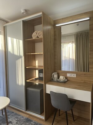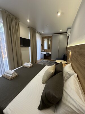 К вашим услугам просторные номера, где продумана каждая деталь для вашего комфорта: удобные кровати, современные кондиционеры, холодильники и телевизоры. На ухоженной зелёной территории базы каждый найдет занятие по душе: уютные летние беседки для вечерних посиделок, специальные зоны для барбекю и веселая детская площадка, где малыши смогут безопасно играть.