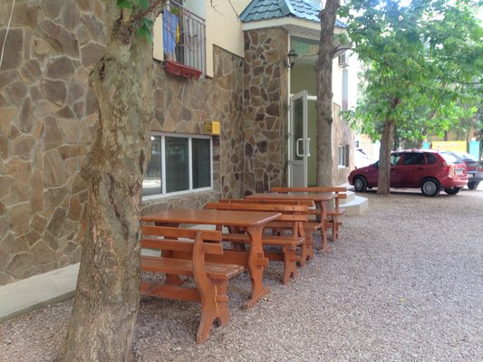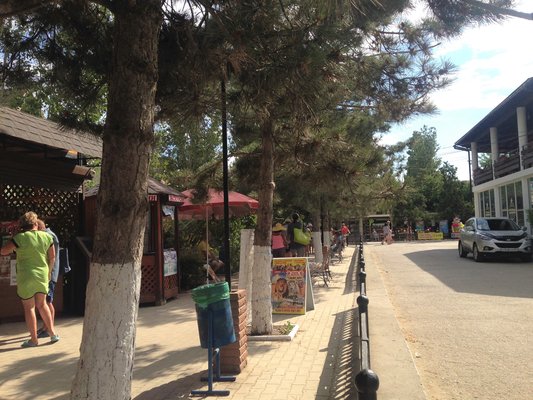 Международным автобусом до автостанции г. Саки, далее маршрутным такси до остановки б/о «Прибой». На территории б/о повернуть направо, дойти до двух четырехэтажных корпусов с надписью "Кафе "Изумруд".