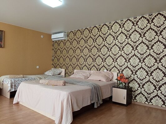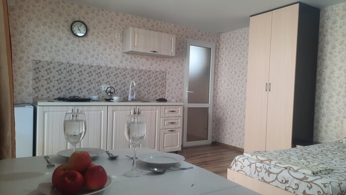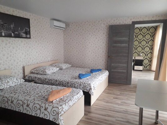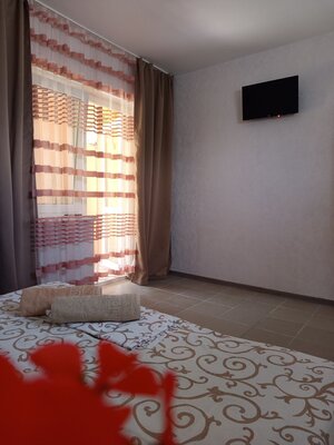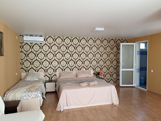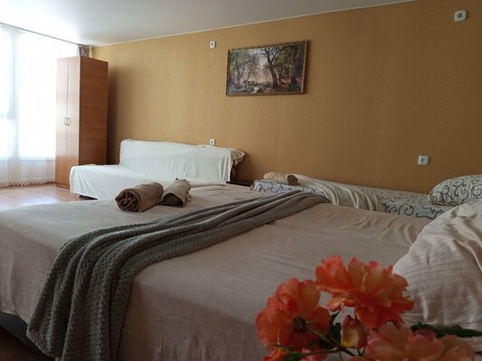 До моря всего 10 минут пешком, а рядом расположены уникальные природные богатства: целебный лиман с черной глиной и озеро Ойбурское. Мы предлагаем номера на любой вкус — от просторных семейных двухкомнатных номеров с кухней до уютных комнат для пар и компаний.