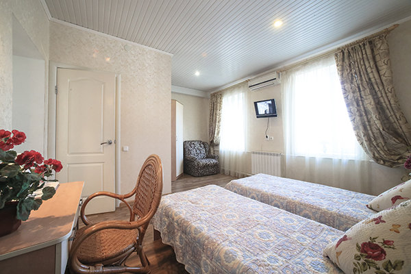 Трехэтажное здание отеля построено в 2010 году и находится на благоустроенной территории. Светлые номера оборудованы удобной мебелью и оснащены современной техникой. Часть номеров имеет выход на общую террасу.