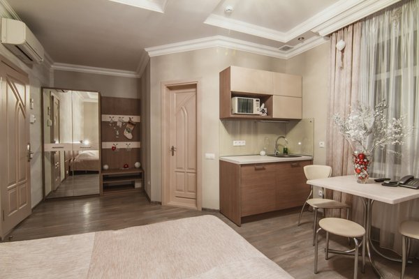 "Каштановый особняк" предоставляет номера выполненные в европейском стиле и светлых тонах. Каждая комната оснащена новой, мягкой мебелью и необходимой техникой. В некоторых имеется собственная кухня.