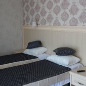 Трехэтажное здание отеля разместилось на закрытой территории площадью 2000 кв.м. Гостям предлагаются просторные двух- и четырехместные номера категорий «Люкс» и «Полулюкс». Во всех номерах имеются кондиционеры, мини-холодильник, комфортабельная мебель, санузел с душевой кабиной.