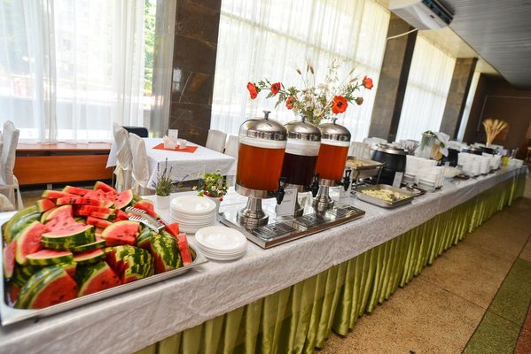 Гостям предоставляется полный пансион с диетическим меню, а в высокий туристический сезон — питание по системе «Шведский стол».