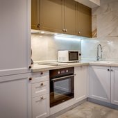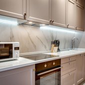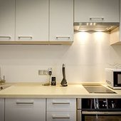 В апартаментах имеется кухня с духовым шкафом, микроволновой печью, газовой плитой, посудомоечной машинкой. Рядом есть несколько кафе и ресторанов.