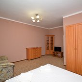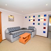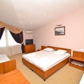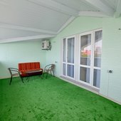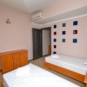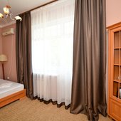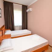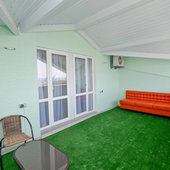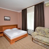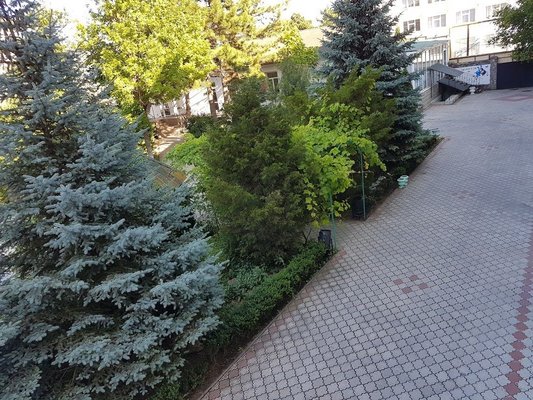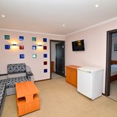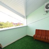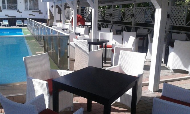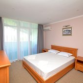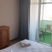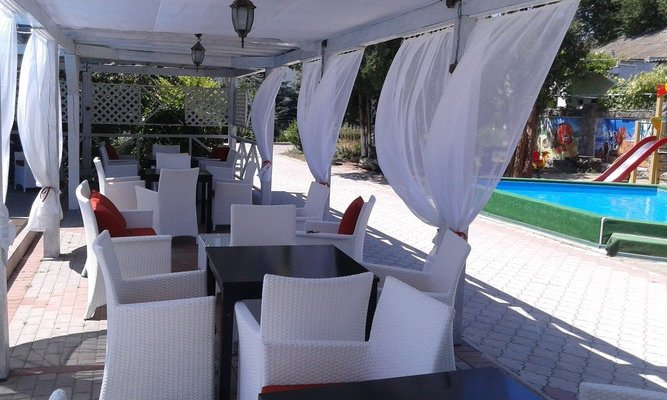 Территория просто изобильна зеленью, поэтому маленький минус её небольшой площади сразу перекрывается. Площадки для детей есть, они достаточно новые. Для детишек ещё есть специальный бассейн. Питание – то, что нужно. Не слишком вычурно, по-домашнему. В номере все было хорошо, балкон особенно понравился. Поблизости с пансионатом находится много интересных мест, куда можно сходить (парк, дельфинарий, аквапарк и т.д.) До моря идти тоже приятно, потому что по пути красивый сквер.