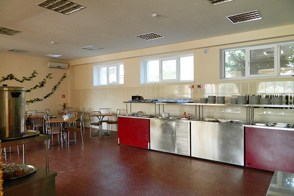 Столовая — на 80 мест; линия раздачи "шведский стол"