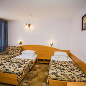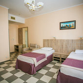 Санаторий располагает номерами от эконом класса до номеров класса люкс. Общая вместимость – 170 человек без учета дополнительного размещения. Режим работы — круглогодичный.