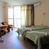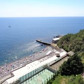Пляж является собственностью санатория. Пляж оборудован душевыми кабинками и медицинским пунктом.