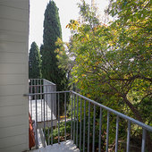 Междугородним автобусом до автовокзала г.Алушта, далее троллейбусом №2 до конечной остановки "Профессорский уголок", далее пешком около 2 км до конца Набережной, район "Отрада", ориентир - на опорной стене информационный щит "Ласковый берег".
