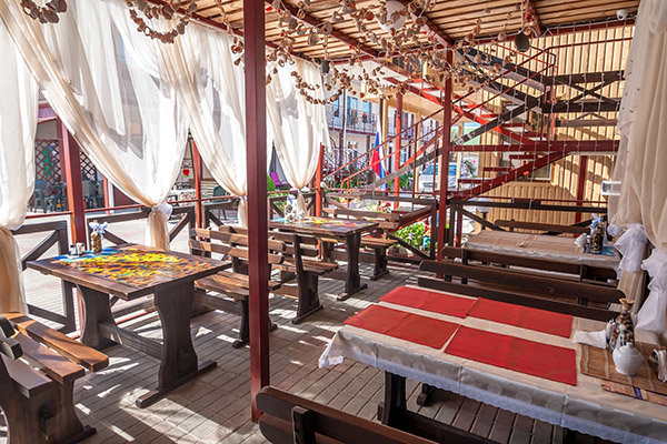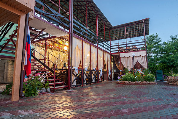 Летнее кафе — на территории;кухня- европейская; работает 8:00-20:00