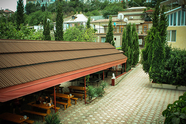 В «Ласточкино гнездо» вам предложат погостить в 1- и 2-комнатных номерах со всеми удобствами. Дворик, озелененный цветами, идеально обустроен как для детей, так и для взрослых. Детям – площадка с игрушками, качелями и горками. Взрослым – беседки для приятного времяпровождения и мангал, на котором готовятся самые вкусные мясные и рыбные блюда. Между делом, у нас работает кафе. Вас будут баловать блюдами украинской, крымской и армянской кухонь.
