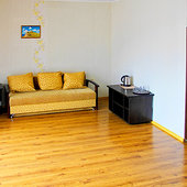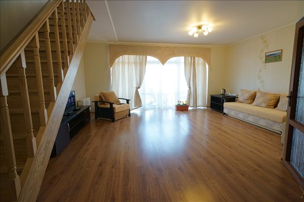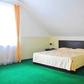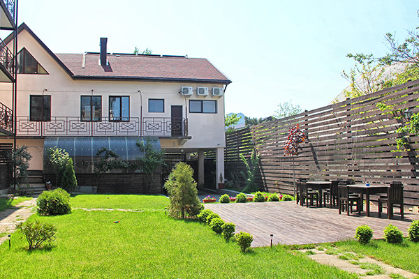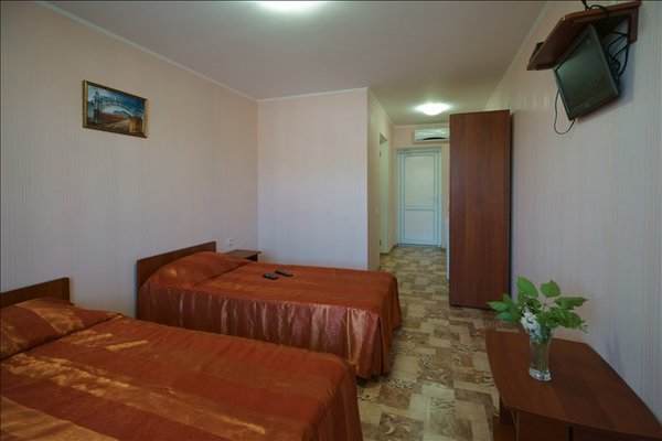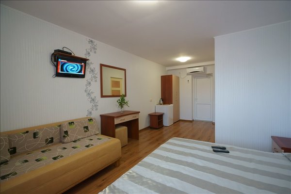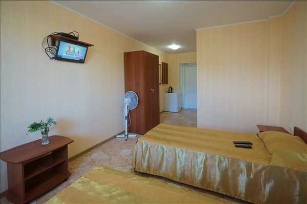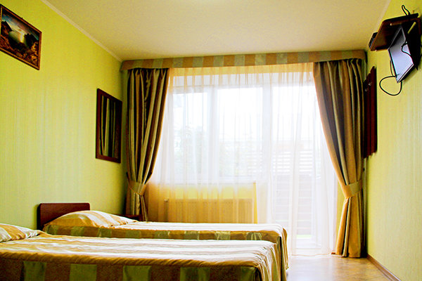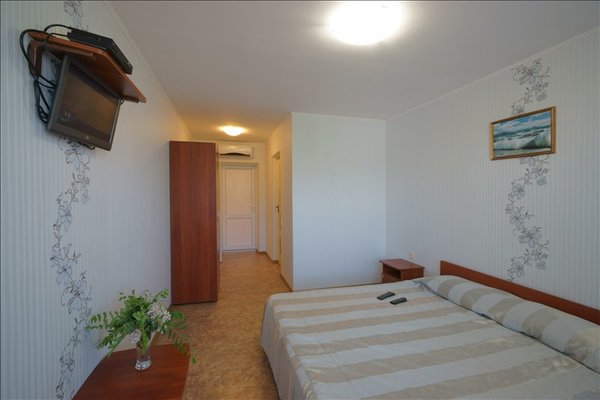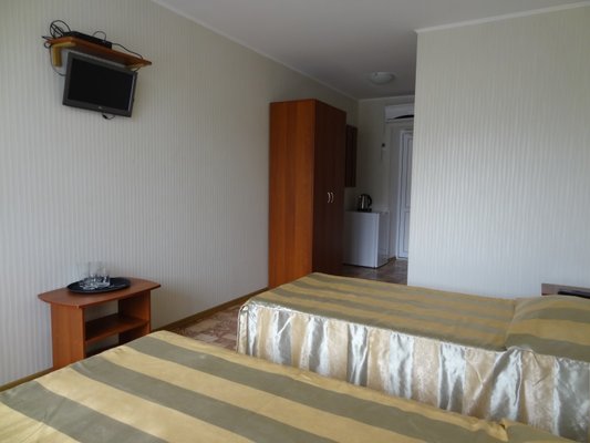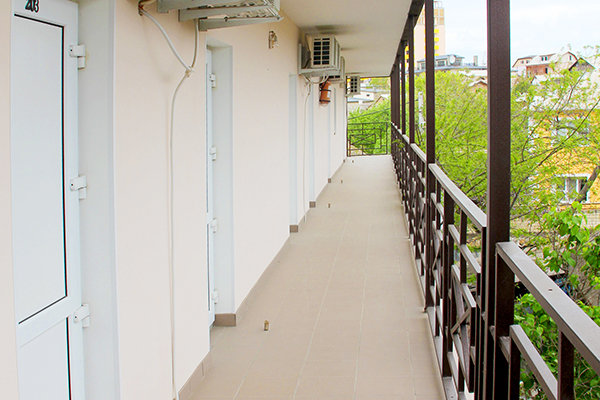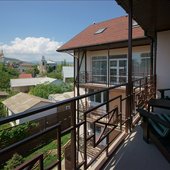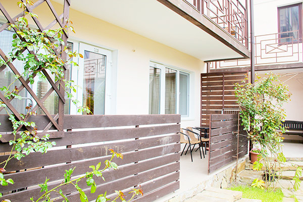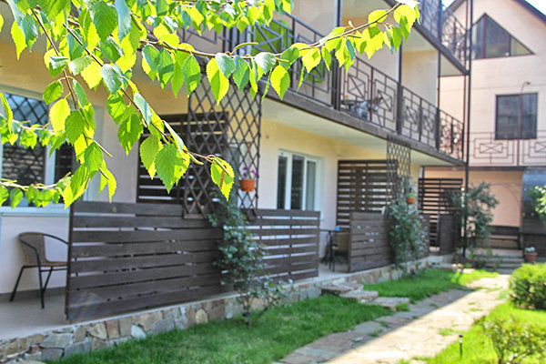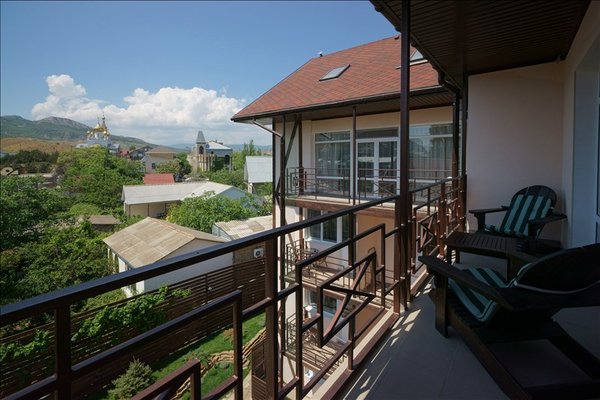 В распоряжении гостей просторные уединенные номера, номера с кухней для семейного отдыха, уютные номера для влюбленных пар, а также двухэтажные «видовые» апартаменты. С балкончиков и окон всех номеров открывается удивительный вид на знаменитый потухший вулкан Крыма – Кара-Даг (в переводе «Черная гора»).