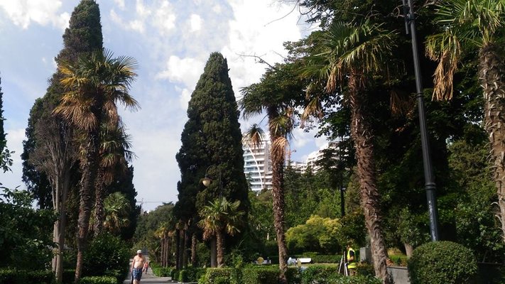 Самолетом до аэропорта г. Симферополь, далее из аэропорта рейсовым автобусом до автовокзала г. Ялта, далее маршрутное такси № 11 или №35 до остановки Колоннада, далее пешком через Приморский парк