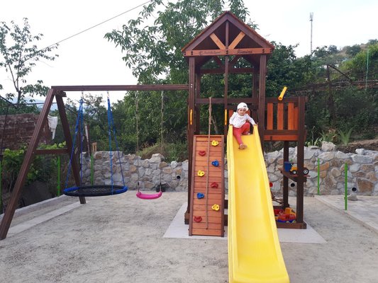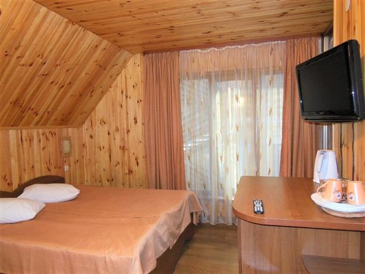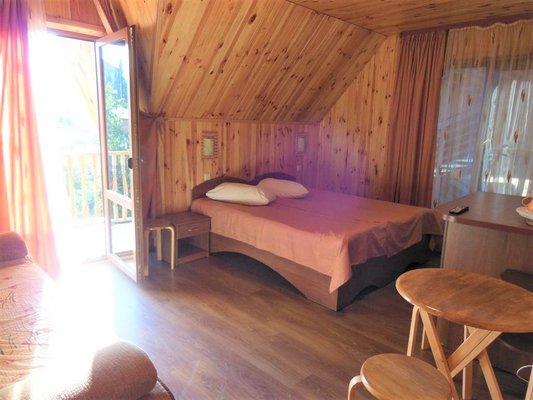 На территории расположены корпуса: двухэтажный и четырехэтажный без лифта. Здесь созданы все условия для комфортного семейного отдыха. Гостей ждут благоустроенные светлые комнаты, терраса с открытым сезонным бассейном, лаундж-зона с принадлежностями для барбекю, зал тренажеров и детский уголок.
